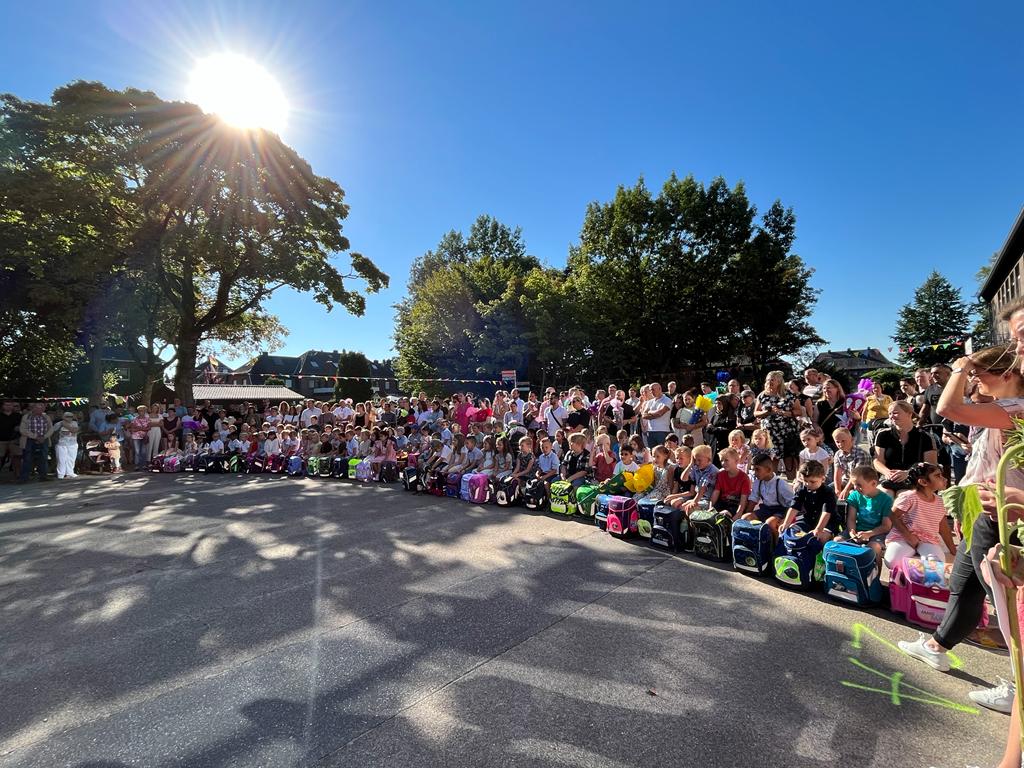 Heute wurden die Erstklässler eingeschult! In diesem Jahr konnte der von den Viertklässlern vorbereitete Gottesdienst mit Segnung wieder in der Arnold-Janssen-Kirche stattfinden. Anschließend ging es bei strahlendem Sonnenschein auf den Schulhof, auf welchem die neuen Schülerinnen und Schüler mit einem Theaterstück und einem Lied empfangen wurden.